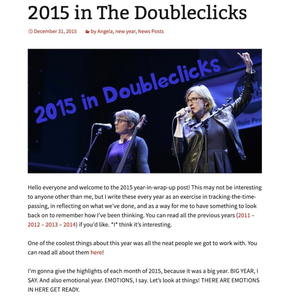2015 – The Doubleclicks post on their website “2015 in The Doubleclicks”.