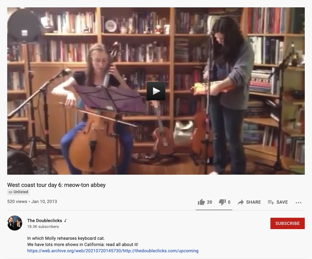 2013 – The Doubleclicks post the vlog “West coast tour day 6: meow-ton abbey” on YouTube.