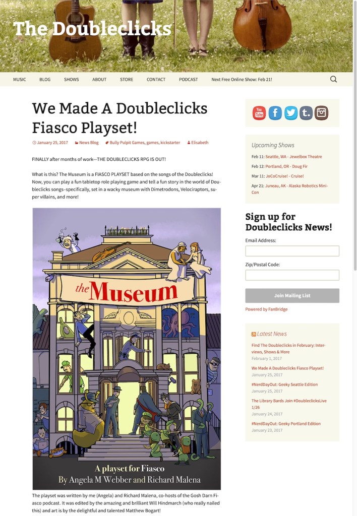 2017 – The Museum, a Fiasco playset based on Doubleclicks songs is released.