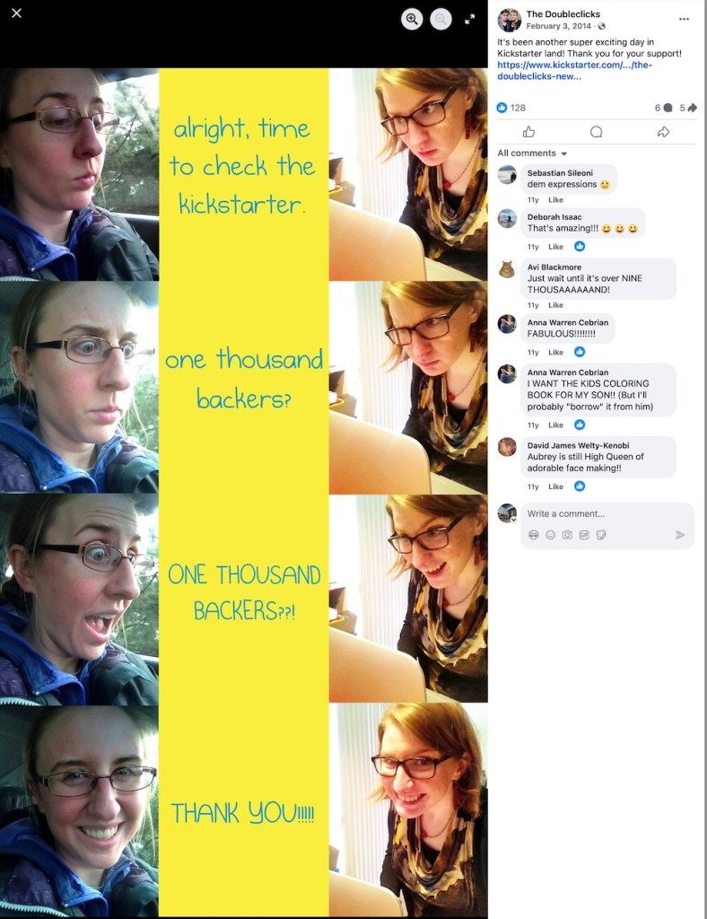 2014 – The Doubleclicks post a very expressive Facebook update as they reach 1000 backers on their Dimetrodon Kickstarter.