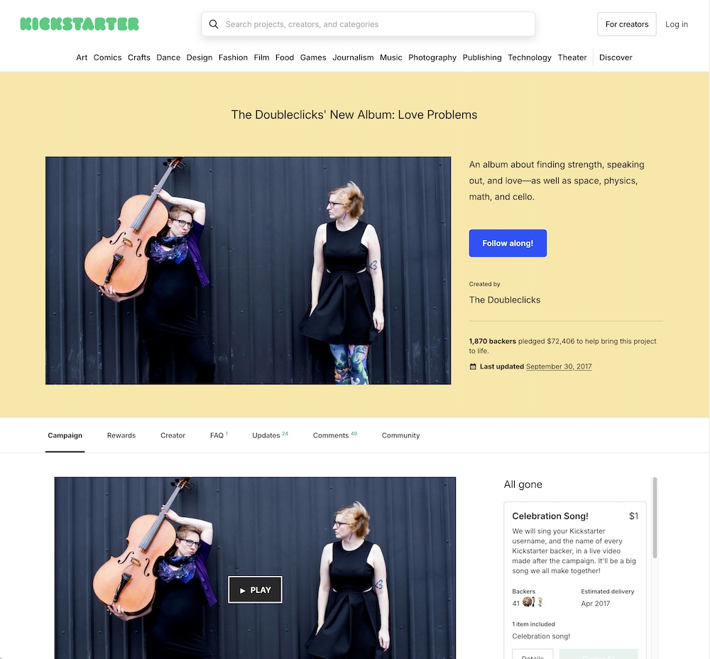 2017 – The Doubleclicks launch the Kickstarter for their 5th album “Love Problems”.