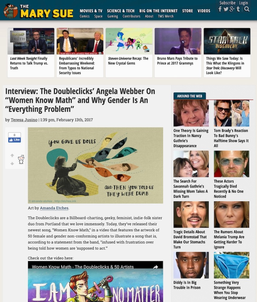 2017 – The Mary Sue publishes an interview with Laser “The Doubleclicks’ Laser Webber On “Women Know Math” and Why Gender Is An “Everything Problem””.