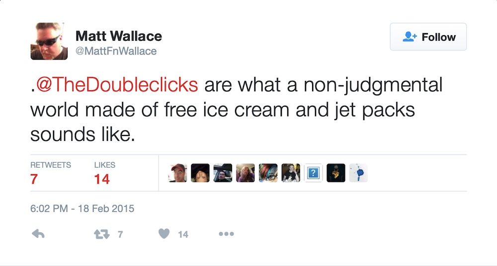 2015 – Matt Wallace on Twitter coins a charming (and subsequently frequently used) description of The Doubleclicks.