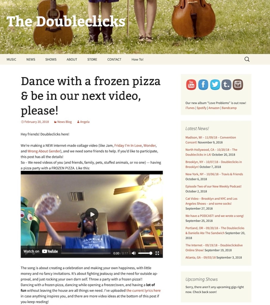 2018 – The Doubleclicks post the entry “Dance with a frozen pizza