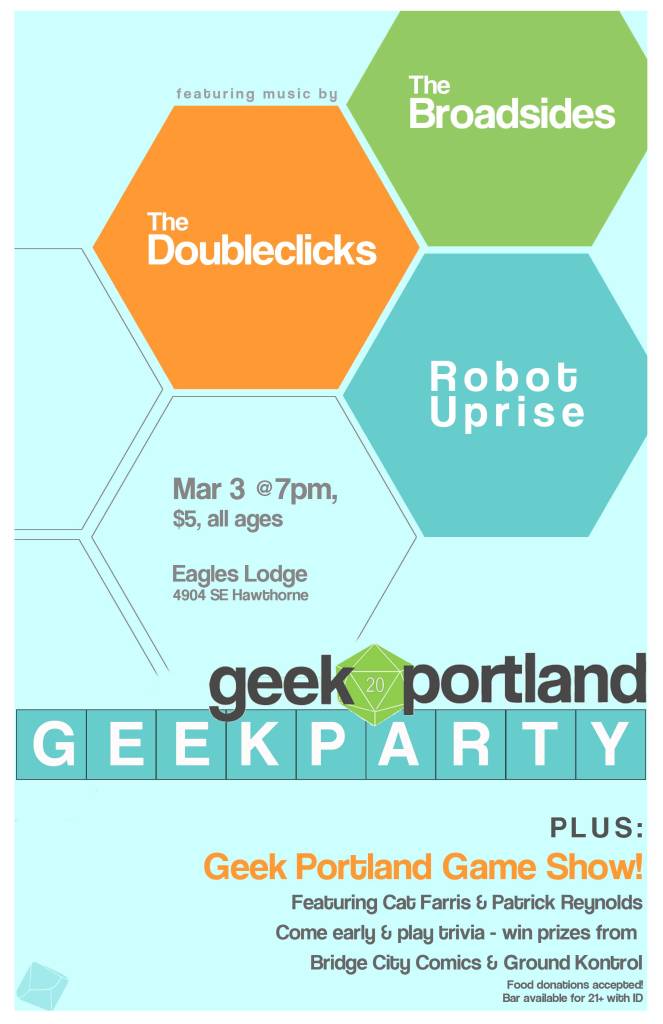 2012 – The Doubleclicks, Robot Uprise, and The (pre PDX) Broadsides are at geek portland’s GEEKPARTY at the East Portland Eagles Lodge #3256 Portland OR